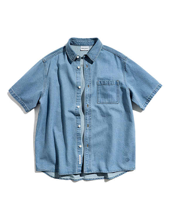 심볼 자수 원포켓 오버핏 반팔 데님 셔츠 MLS239 / 2COLOR M